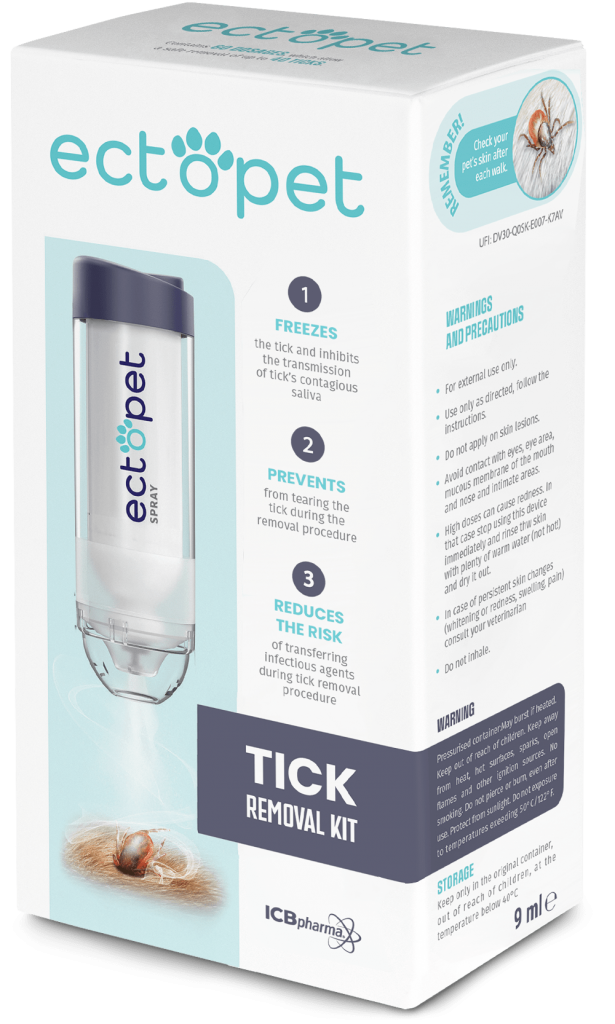 Ectopet Tick Removal Kit effectively freezes ticks, preventing the transmission of infectious pathogens.